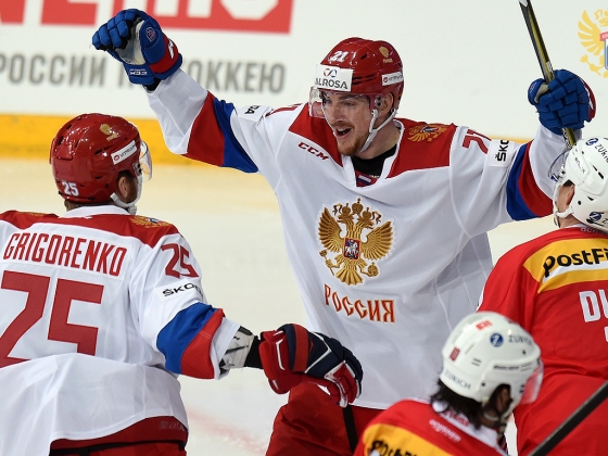 - В девятый раз на лед против сборной Швейцарии вышел Сергей Мозякин – это лучший результат среди нападающих сборной России в играх со швейцарцами, столько же матчей имеет на своем счету защитник российской сборной Денис Гребешков. Отметим, что теперь на счету Сергея в этих играх 9 (5+4) очков, а по количеству заброшенных шайб в ворота сборной Швейцарии он делит первое место с Данисом Зариповым.
